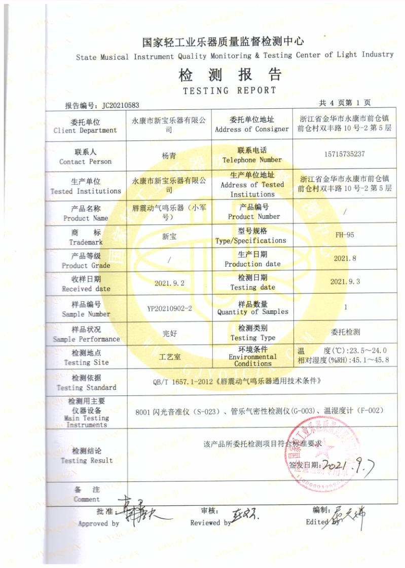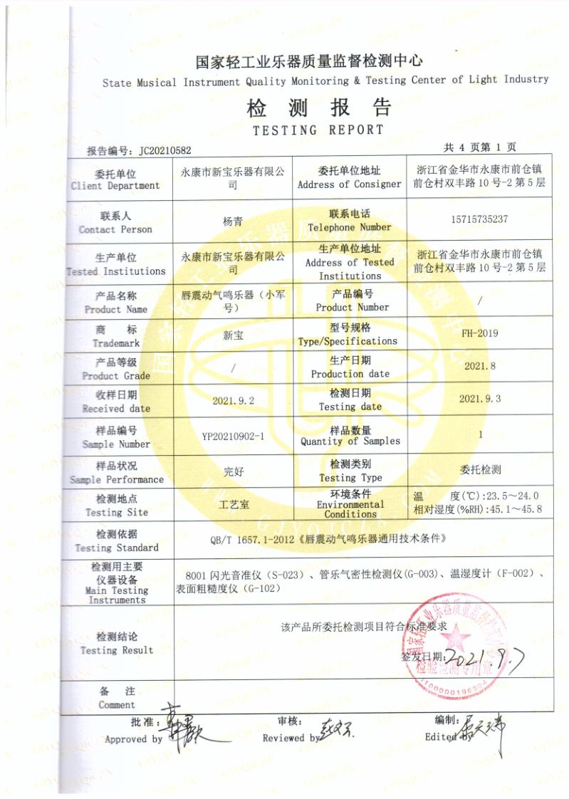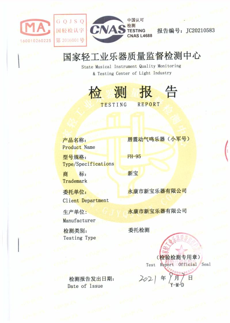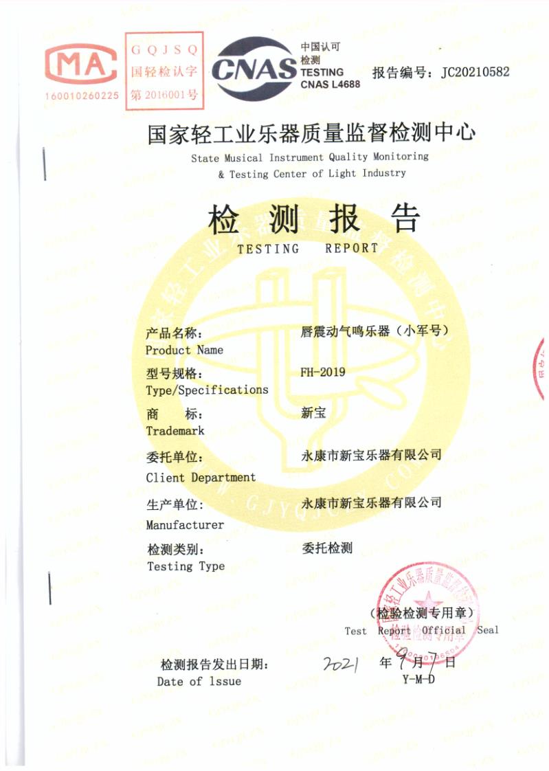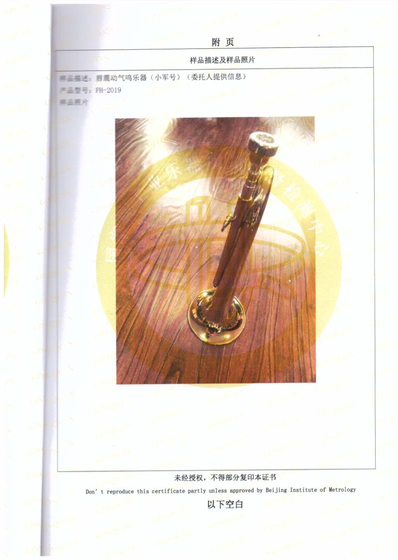 唇震动气鸣乐器(小军号)FH95 | 唇震动气鸣乐器(小军号)FH95 | 唇震动气鸣乐器(小军号)FH2019 | 唇震动气鸣乐器(小军号)FH2019 | 大军鼓检测报告 |