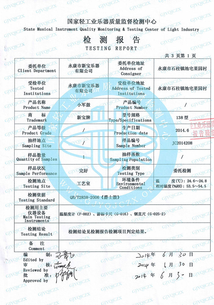 铃鼓检测报告 | 小军鼓检测报告 | 小军鼓检测报告 | 小军鼓检测报告 | 小军鼓检测报告 |